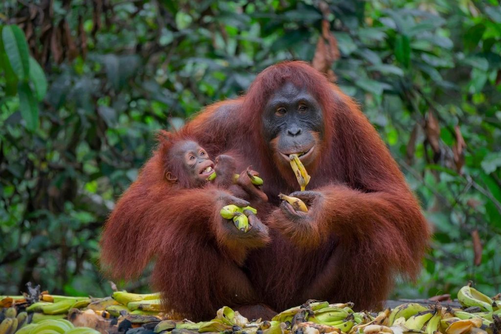 A dieta dos macacos é bastante diversificada e varia de acordo com a espécie, o local e as estações do ano. Curiosamente, a banana que conhecemos e consumimos não é um alimento que cresce naturalmente nas florestas onde esses primatas habitam. Ela é fruto de cultivos humanos, e só aparece na natureza em áreas onde há plantações ou interferência humana.