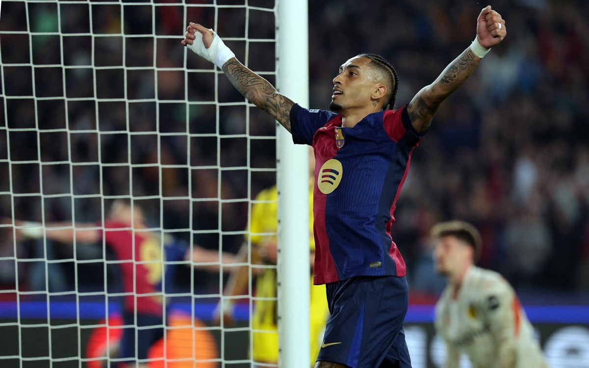Raphinha não participou de gols em apenas três jogos nesta edição da Champions: na estreia contra o Monaco, na partida contra o Brest e no jogo de volta das quartas de final contra o Borussia Dortmund. Ele esteve envolvido em metade dos 40 gols do Barcelona nesta competição.