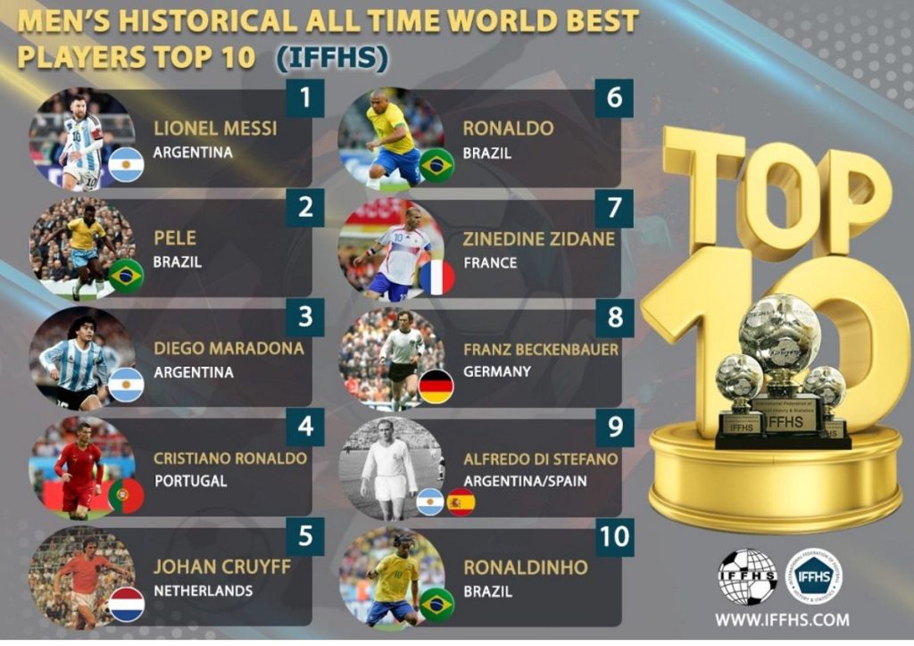 No ranking da IFFHS, Lionel Messi se destacou ao superar ícones como Pelé, que ficou em segundo lugar, e Diego Maradona, que ocupa a terceira posição. O ranking avalia conquistas, consistência, impacto no futebol global e desempenho individual ao longo da carreira.