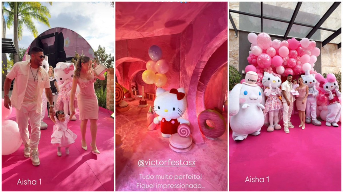 O atleta Hulk, de 38 anos, e a médica e influenciadora Camila Ângelo, de 35 anos, organizaram uma festa temática da Hello Kitty para celebrar o primeiro ano de vida de sua filha mais nova. O evento ocorreu em Campina Grande, Paraíba, cidade natal do jogador, e demandou 13 dias de preparação, envolvendo 150 profissionais de sete estados do Brasil.