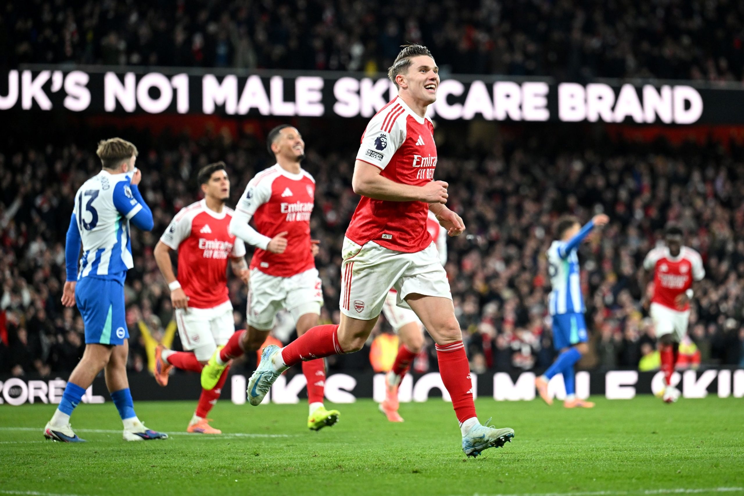 O Arsenal consolidou sua posição na ponta da tabela ao vencer o Brighton por 2 a 1, com gols de Odegaard e Rutter, enquanto Diego Gómez marcou para o time visitante. Com essa vitória, os Gunners alcançaram 42 pontos.