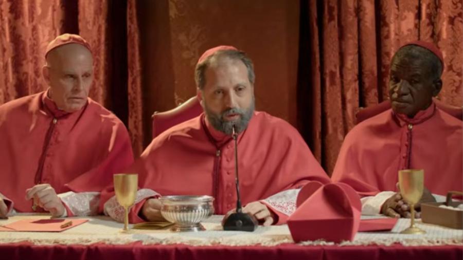 No enredo, Gregório Duvivier, de 39 anos, interpreta o cardeal que organiza o conclave. Em uma cena cômica, ele está prestes a revelar o nome do novo papa quando é interrompido por Deus, personagem interpretado por Fábio Porchat, de 41 anos.