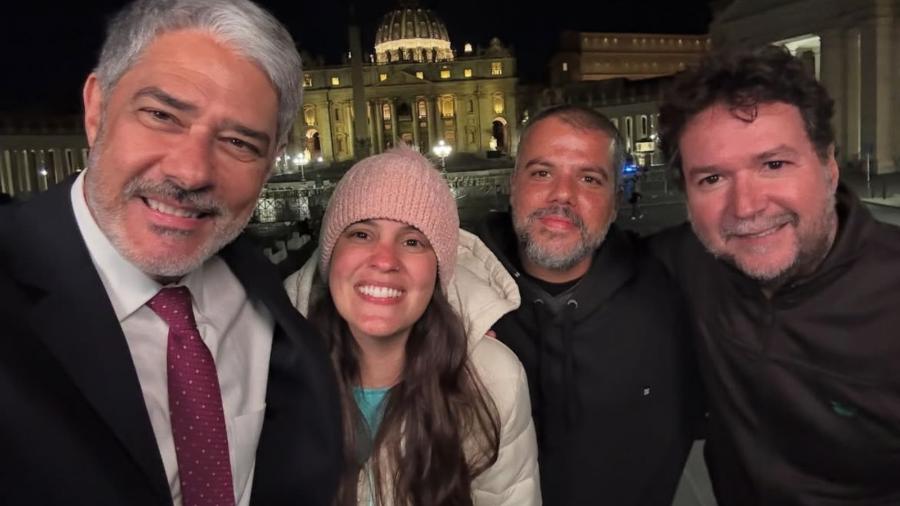 O apresentador do Jornal Nacional publicou fotos com sua equipe como forma de agradecimento pela cobertura realizada. “Fomos os últimos a deixar a estrutura metálica que nos serviu de estúdio durante esses dias no Vaticano”, comentou Bonner.