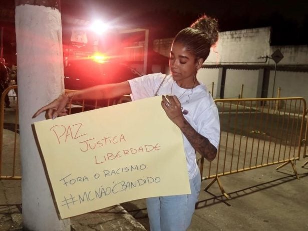 Usando uma camiseta com fotos do casal e de seus três filhos, Vivianne também segurou cartazes que traziam mensagens como “MC não é bandido”, “Paz, justiça e liberdade” e “Fora o racismo”. Na legenda de sua postagem, ela declarou: “MC NÃO É BANDIDO! Seremos resistência!”.