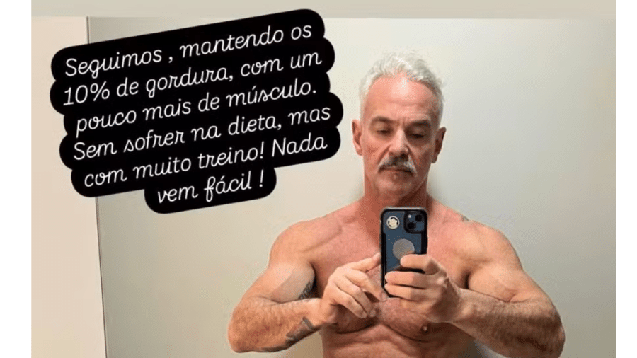 Aos 58 anos, Mateus Carrieri apareceu apenas de sunga, exibindo seu corpo tonificado. O ator compartilhou que mantém 10% de gordura corporal, afirmando: “Não é preciso sofrer com a dieta, mas é necessário muito treino. Nada é fácil”, revelou em seus Stories. Formado em educação física, Carrieri também atua como personal trainer desde 1989.