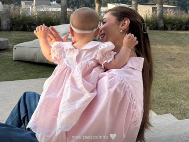Jade Magalhães, aos 31 anos, encantou seus seguidores ao divulgar uma nova foto da filha Serena, que tem apenas 8 meses. A menina, fruto do relacionamento com o cantor Luan Santana, de 34 anos, apareceu em um look coordenado com a mãe, embora ainda não tenha tido seu rostinho exposto, pois os pais optaram por manter sua identidade em sigilo. “Meu tesouro”, escreveu Jade na legenda. Na imagem, ambas vestem tons de rosa, com a pequena usando um vestido que combina perfeitamente com a camisa da designer.