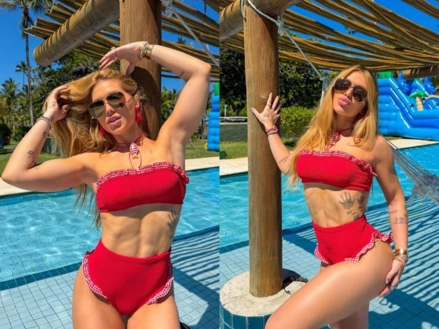 Em sua estadia em Trancoso, na deslumbrante costa sul da Bahia, Virginia Fonseca atraiu olhares neste sábado (27/12) ao compartilhar novas fotos em suas redes sociais. A influenciadora surgiu deslumbrante em um biquíni vermelho com textura atoalhada e detalhes em babados xadrez, sem alças, evidenciando sua boa forma enquanto desfrutava do famoso destino.