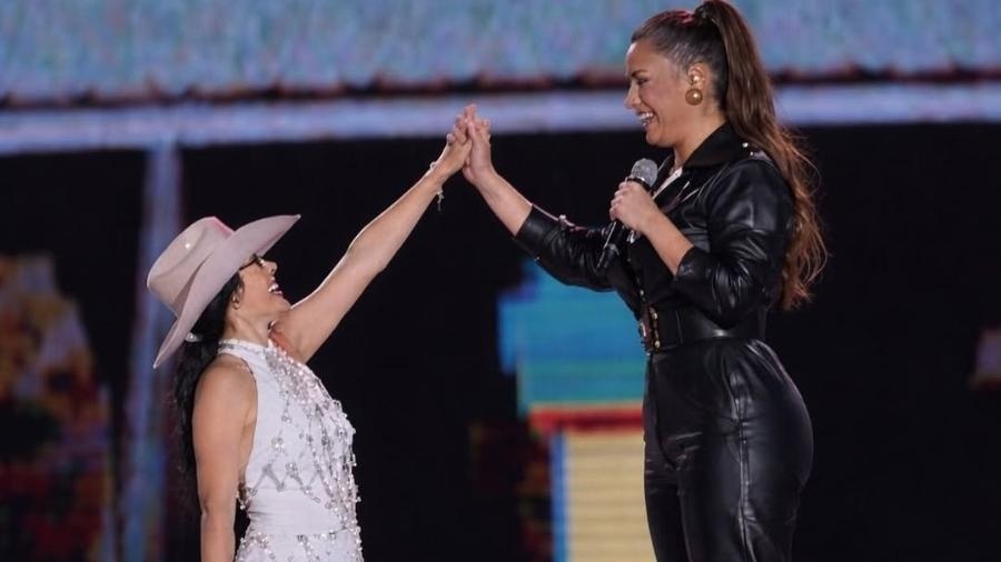 Em um divertido desentendimento nos bastidores do novo DVD de Paula Fernandes, Simone Mendes, 41, brincou com Ana Castela, 22, após ser ignorada. Para ser “vista”, a cantora sertaneja compartilhou uma montagem com um salto plataforma gigante, dizendo: “Quero ver se não vai me enxergar agora!” Ana respondeu bem-humorada: “Gente, agora eu consigo ver! [risos]”. O momento virou um sucesso nas redes sociais, com Simone brincando sobre a simpatia de Ana e a diferença de altura entre elas.