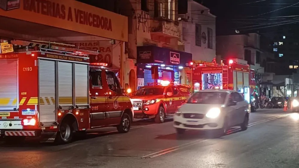 O fogo iniciou no segundo andar do imóvel, enquanto o primeiro pavimento abrigava estabelecimentos comerciais. Em razão da possibilidade de vítimas e do risco de o incêndio se espalhar para as lojas, quatro equipes de bombeiros foram enviadas para o local.