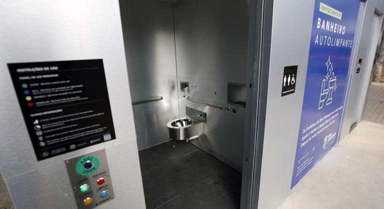 Cada unidade é composta por duas cabines que incluem vaso sanitário, pia, reservatório de sabonete líquido, papel higiênico, secador de mãos e lixeira, todos com reposição diária. Os serviços são acionados por sensores de proximidade, minimizando o contato físico. Para orientar os usuários, uma mensagem de áudio é emitida, explicando como utilizar o banheiro de forma adequada.
