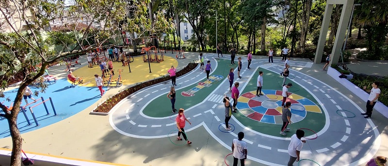 Um dos principais oásis verdes da área, o parque oferece um teatro de arena, brinquedos para crianças, equipamentos de ginástica e amplos espaços sombreados, perfeitos para relaxar ou fazer caminhadas.