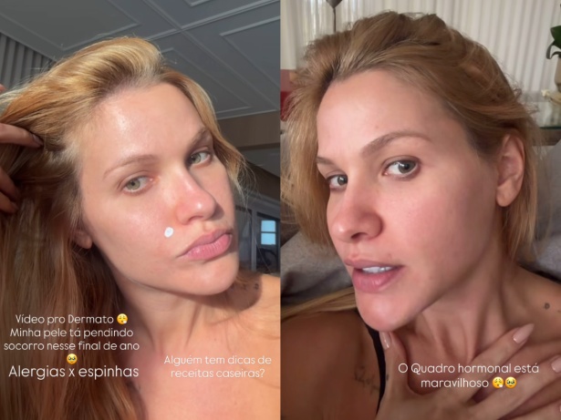 A influenciadora ainda pediu sugestões de receitas caseiras para melhorar a aparência de sua pele aos seguidores. “Antes, a alergia e a acne estavam no meu colo, mas agora atingiram meu rosto e pescoço. Não dá para ver bem no vídeo, mas há várias bolinhas internas. Infelizmente, não posso tomar antialérgicos ou Roacutan [medicamento para acne severa], então, o que podemos fazer?”, concluiu.